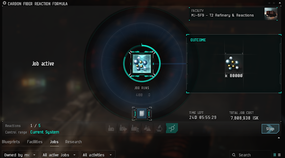It presents, in simple terms, the profitability of each type of reaction based on Jita prices. This is exactly what I was looking for, and after having a little poke around I decided to do a Carbon Fiber run: